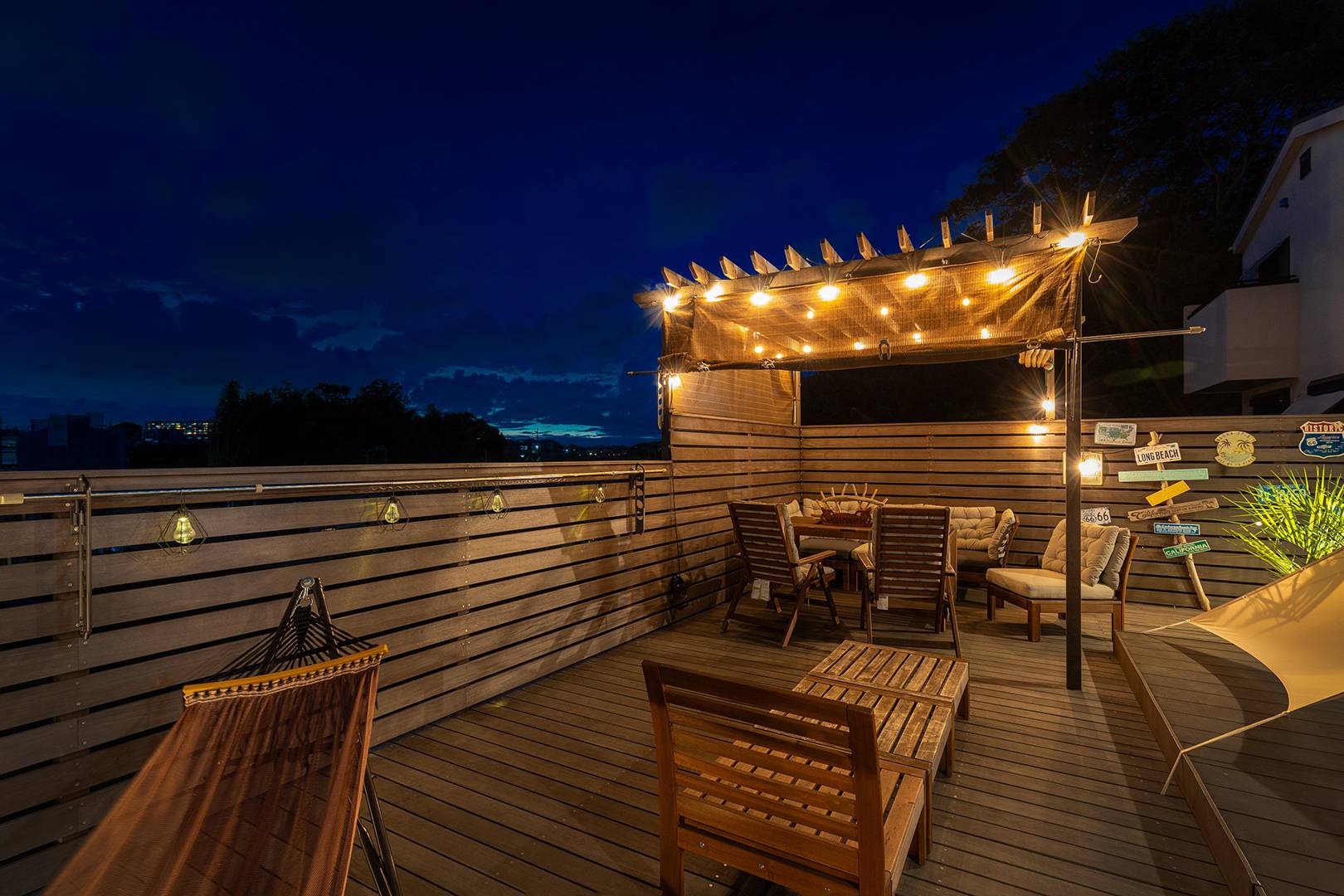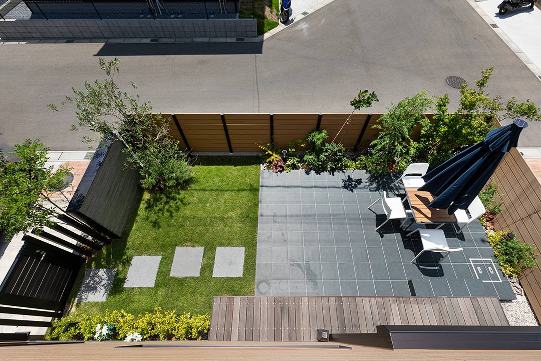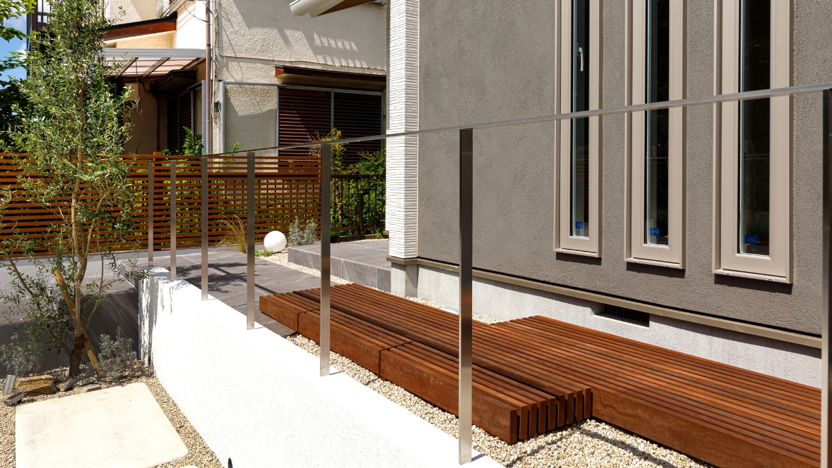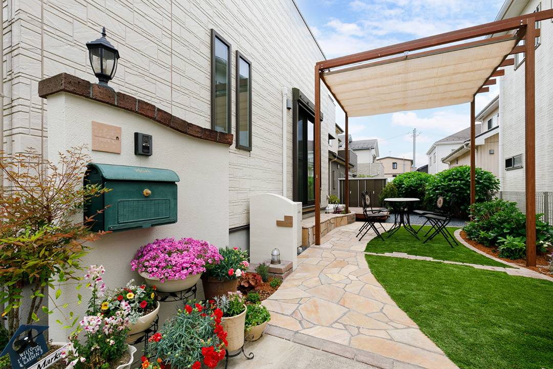 豊富なデザインガーデンの施工経験を活かした、家の内と外の調和・外観の美しさ。夜に輝きを増すライティング技術など、街並みに合ったデザイン性の高いお庭造りを実現しました。