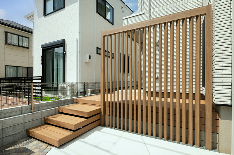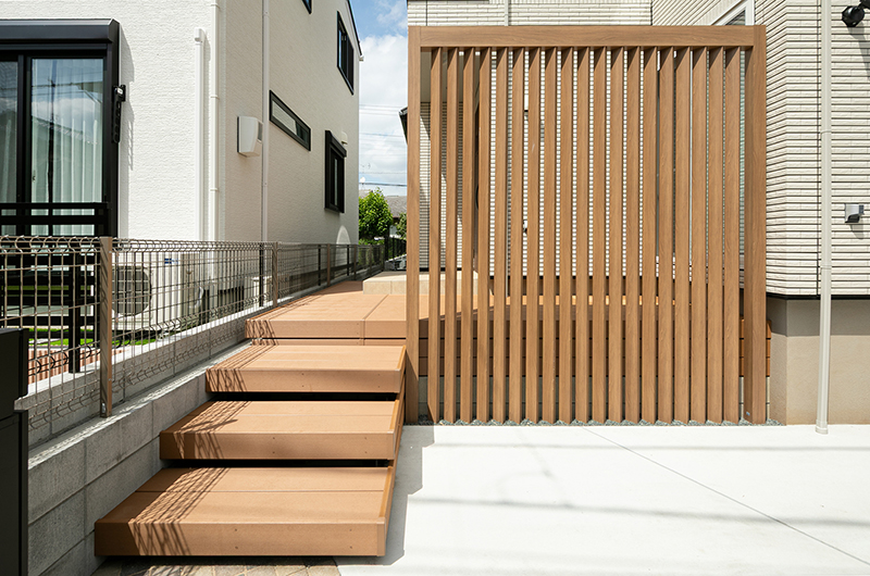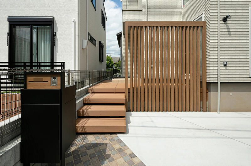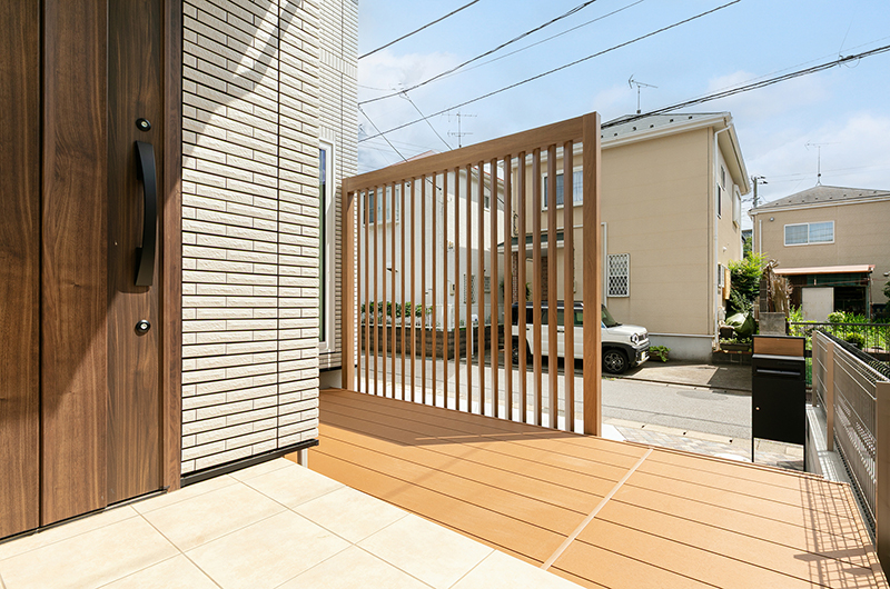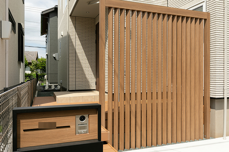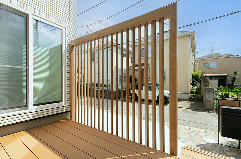 また、目を引くデザイン格子は角度がついている設計のため風や光を遮断することなく視線とプライベート空間を守ってくれます。