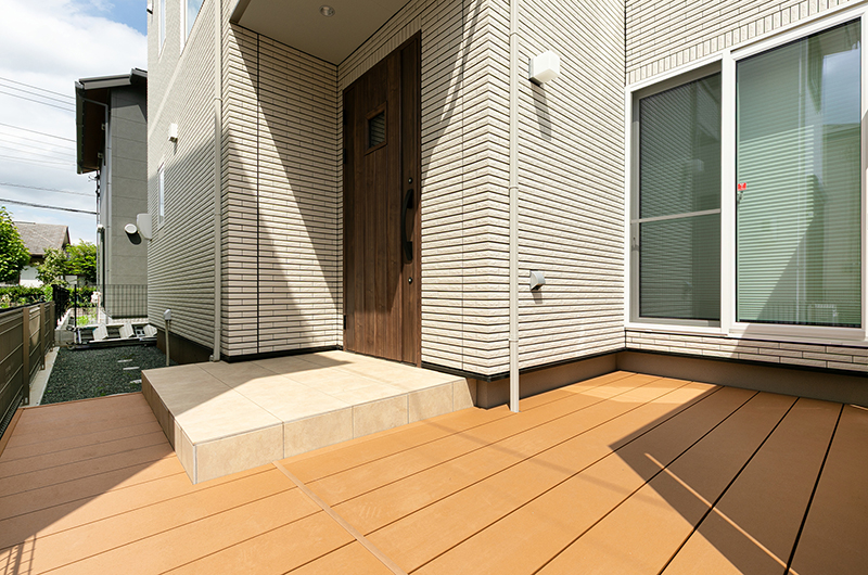 ウッドデッキとデザイン格子の組み合わせがとても素敵なあたたかみのある空間に仕上がったかと思います。
