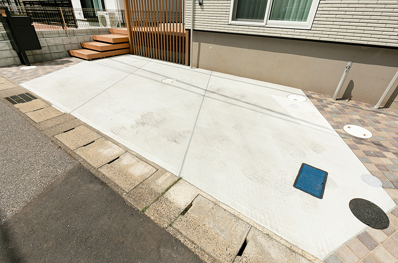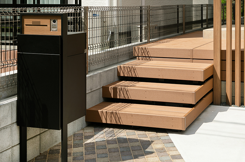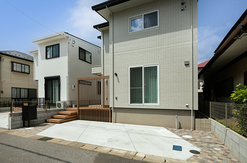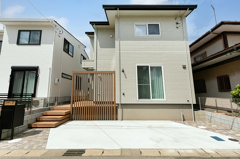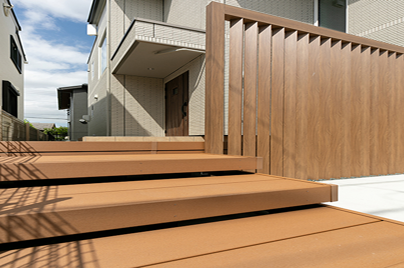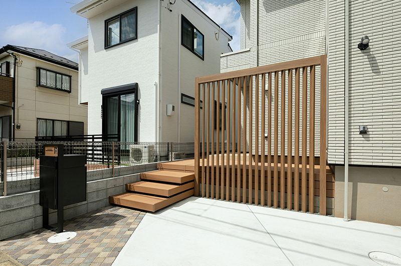 道路面と高低差があるため必然的に階段が多くなる環境でしたが、ウッドデッキを上手く利用し無駄のない設計になっております。