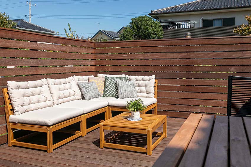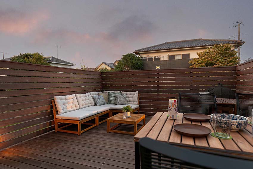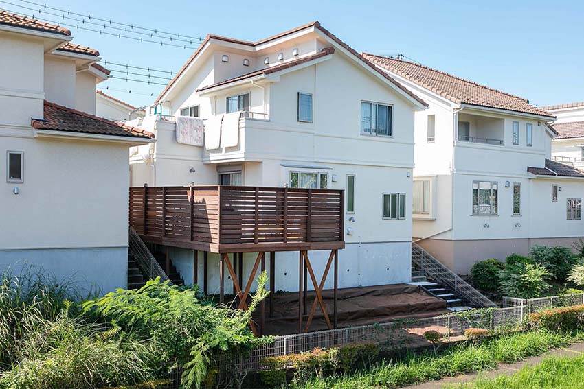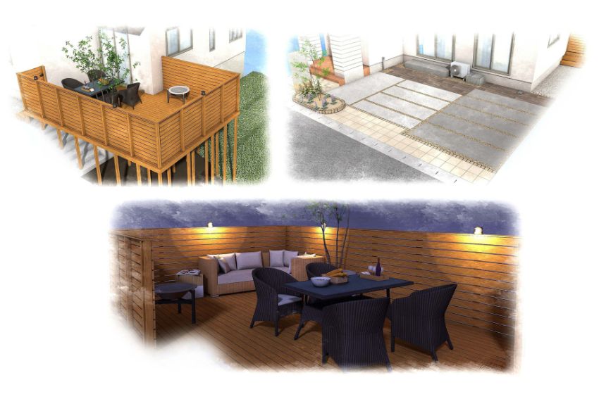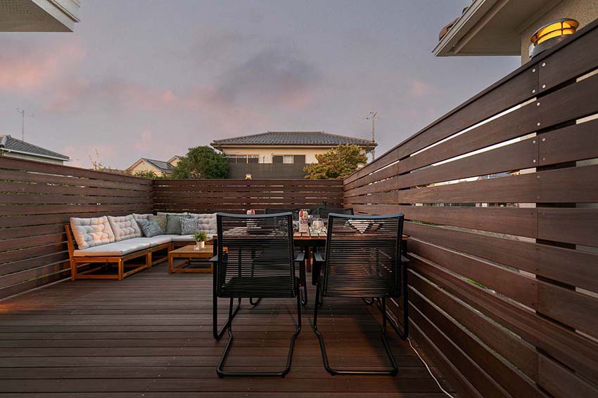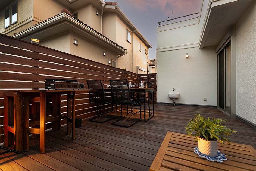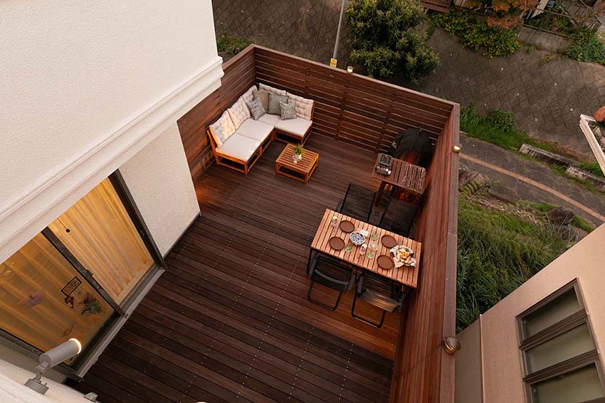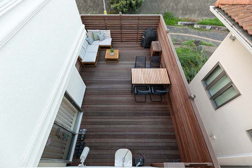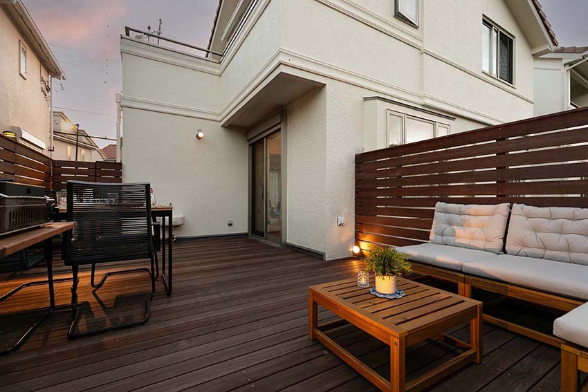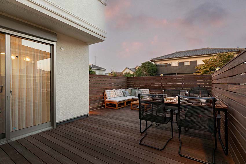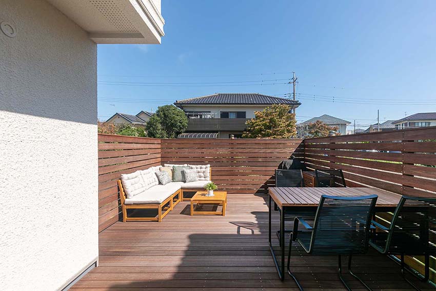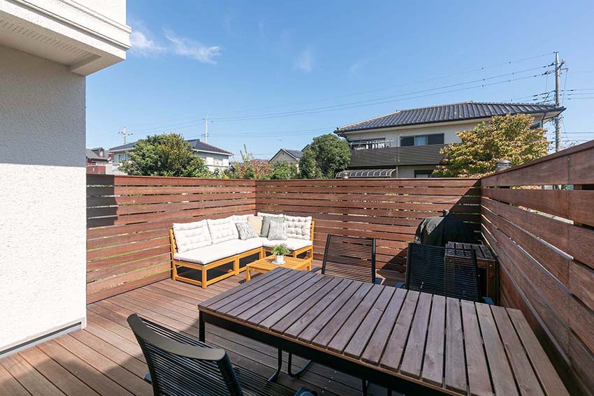 ウッドデッキでナチュラルなメンテナンスフリーのプライベート空間。