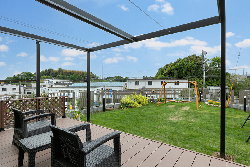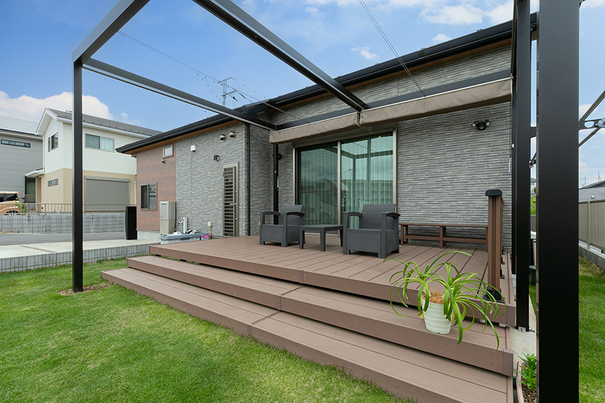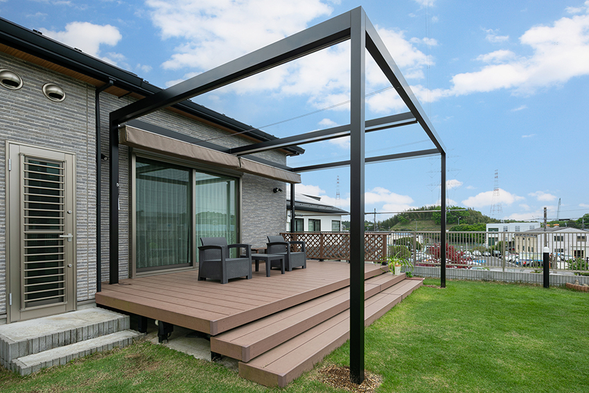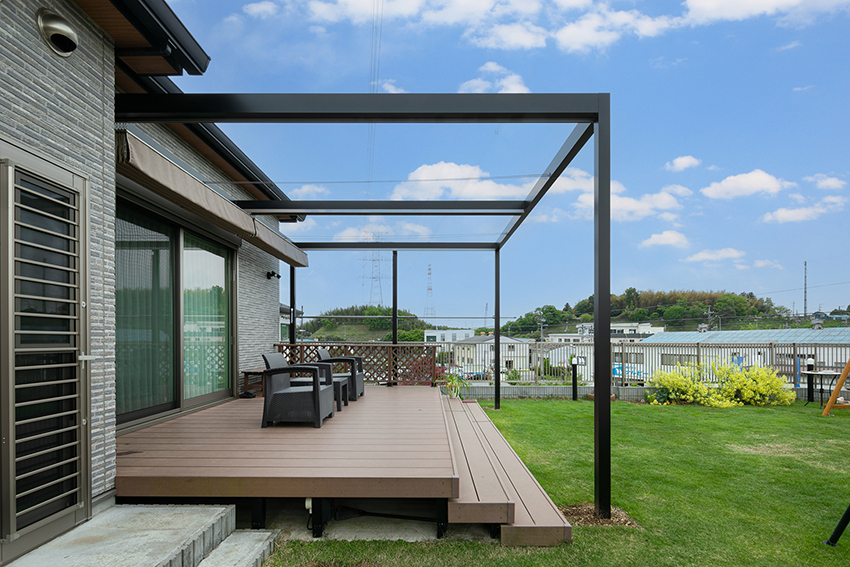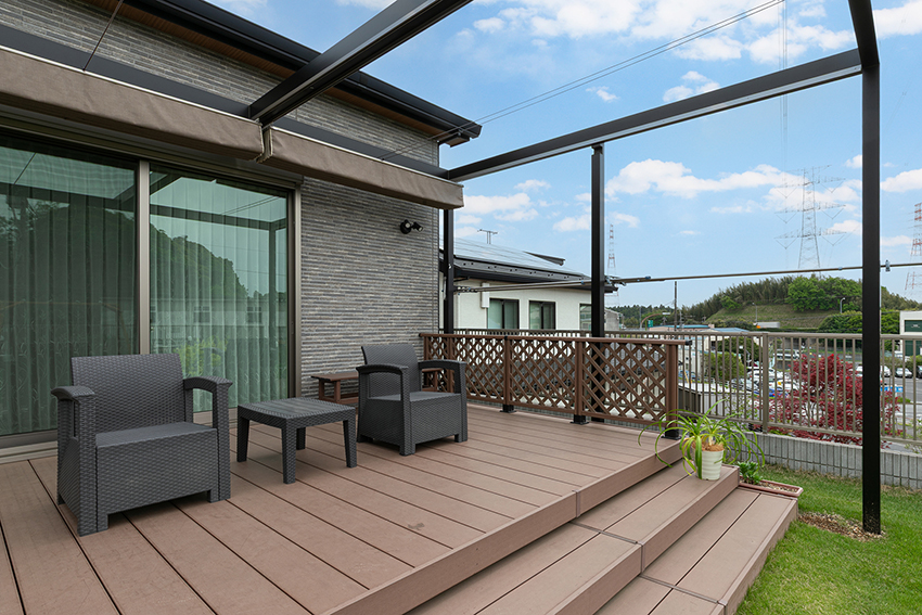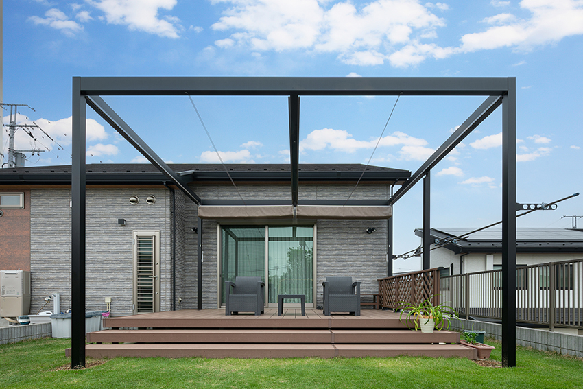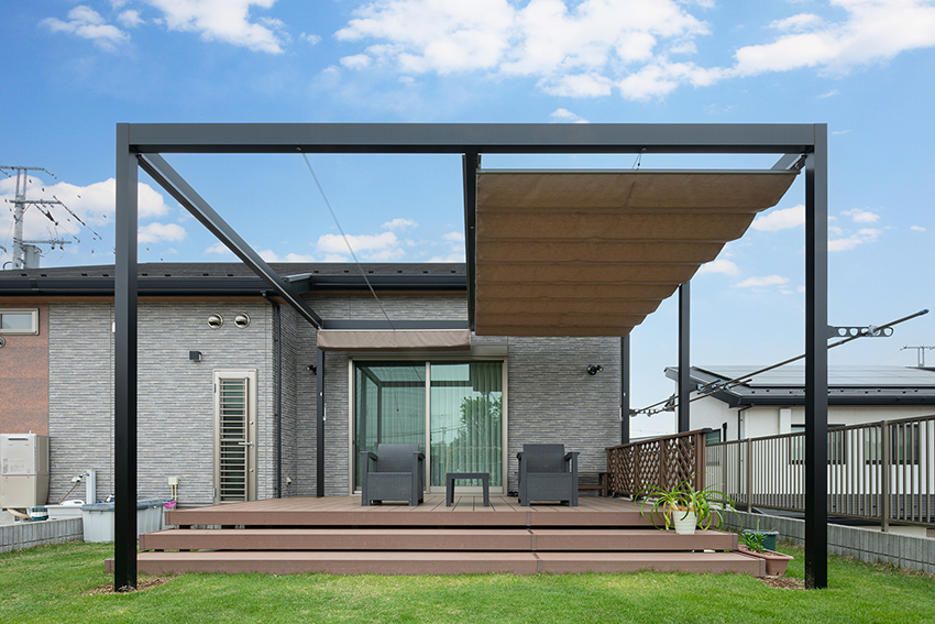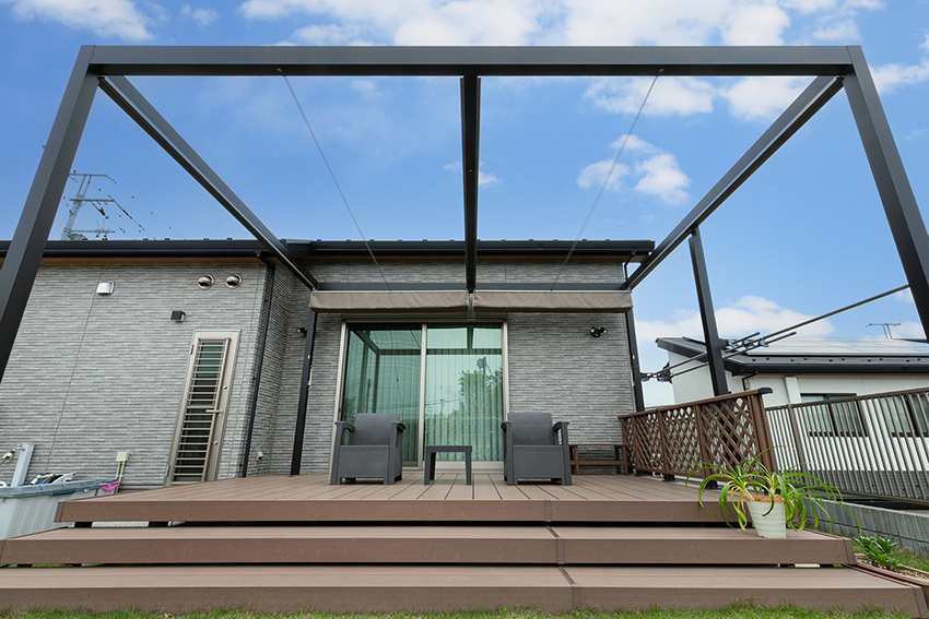 もともとあるウッドデッキを有効活用できていなく、夏の日差しで部屋が暑くなるのをなんとかしたいというご相談でした。