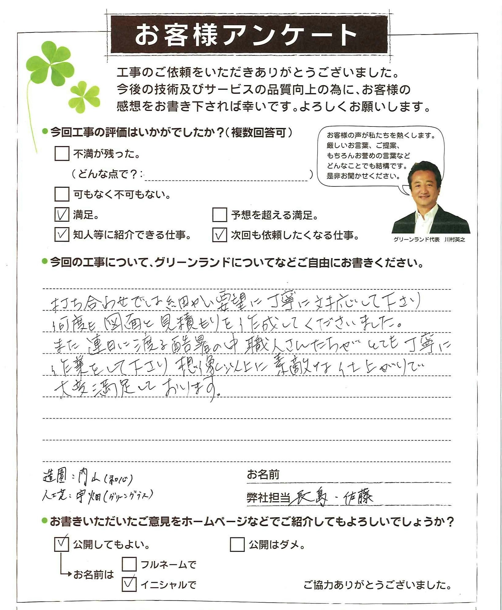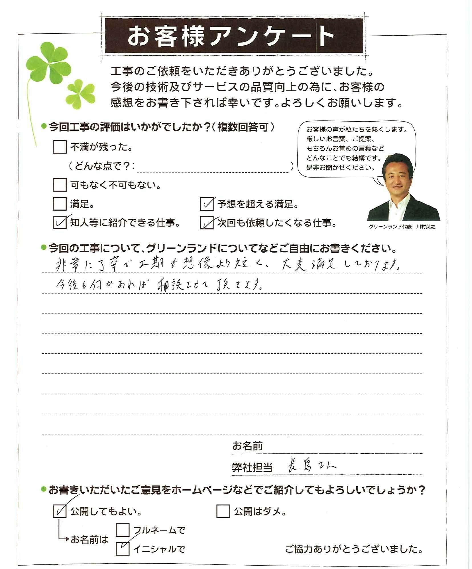 工期も想像より短く、大変満足しております。 今後も何かあれば相談させて頂きます。