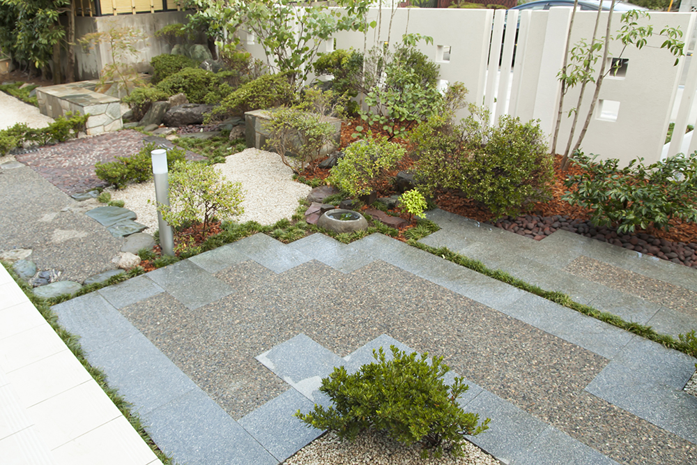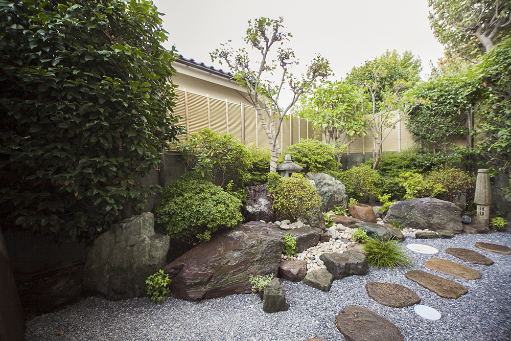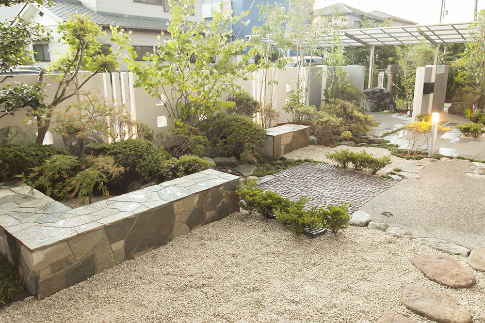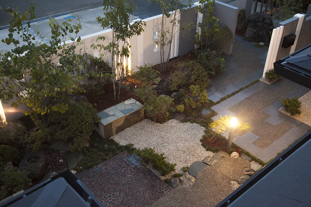 重厚感あふれる住宅の外構として、それにふさわしいエクステリアが完成しました。