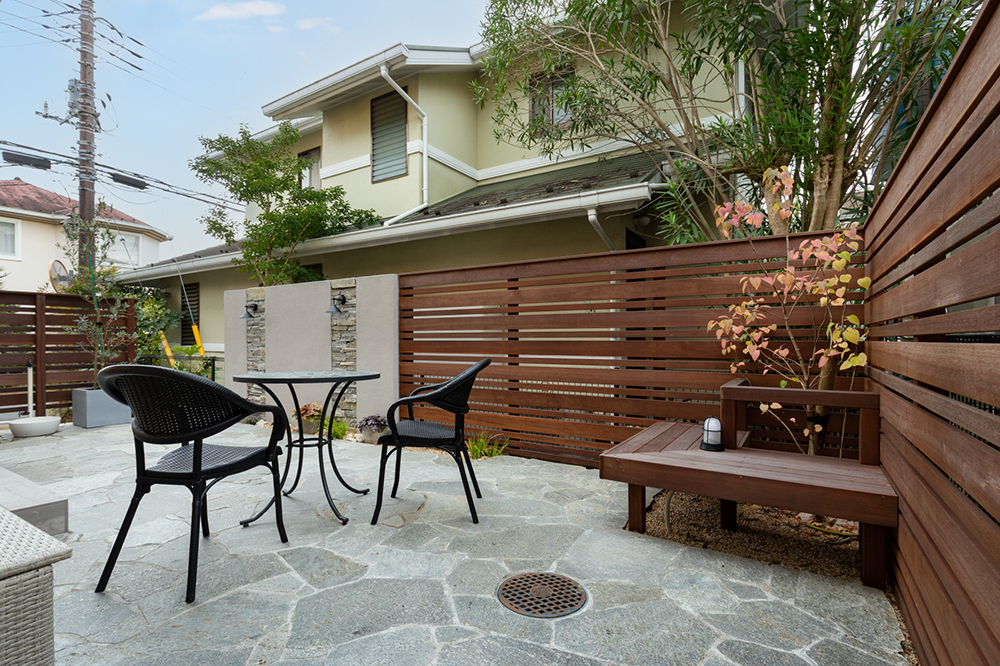 プライベート感を確保しながら開放的でメンテナンスの少ない空間づくりと駐車場拡張を設計。